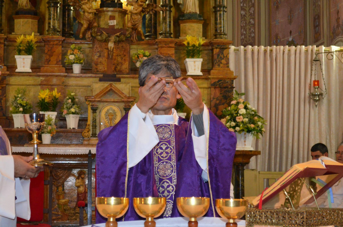 Padre Sidnei Kenji celebra Missa na Igreja Matriz de São José