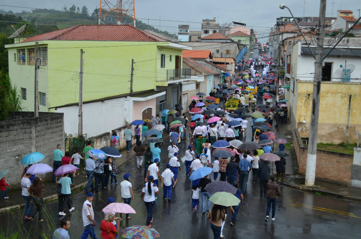 Procissão pelas ruas da cidade de Salesópolis